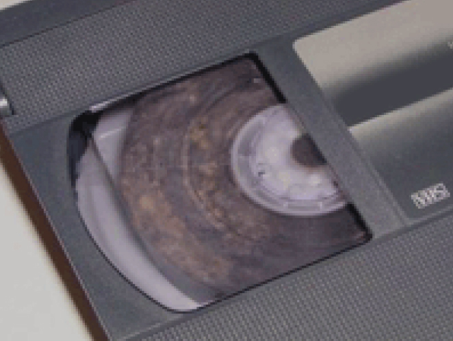 構造上ビデオカセットは密閉度が高くなっています。ビデオテープをよく見るとテープが2重のケースに収まっています。当然ホコリが入りにくい構造になっていますが密閉度が良すぎるため通気性が悪くカビが生えてしまう結果となります。