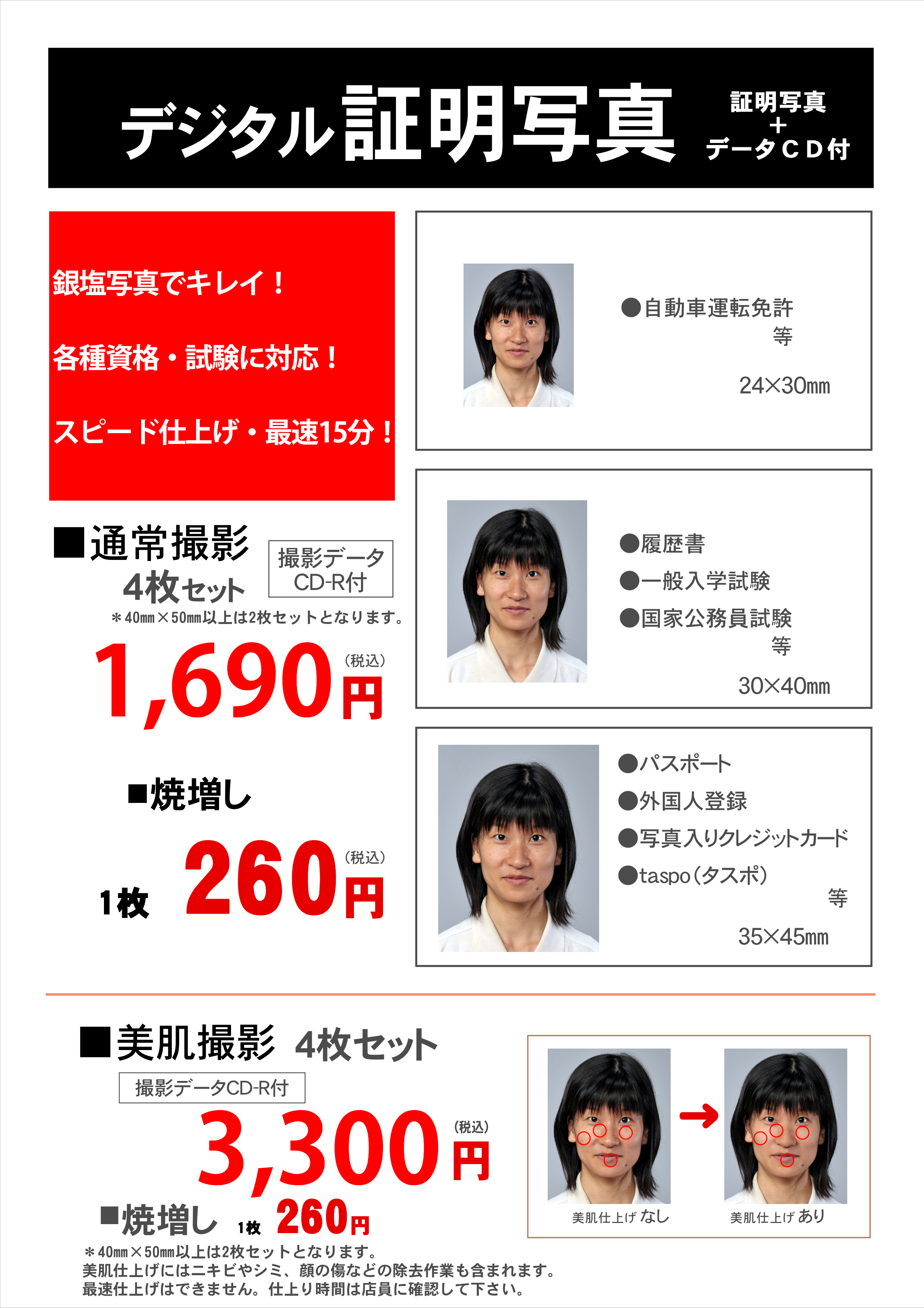 パスポートやビザなどの規格のきびしい証明写真などもおまかせを!